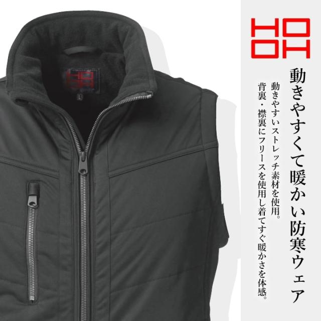 【即日発送】防寒ベスト HOOH 7299 防風 ストレッチ 軽量 保温 撥水 メンズ 男性用 防寒着 防寒服 作業服 作業着 村上被服 【M-3L】