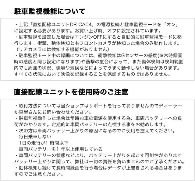 DR-CA04 ドライブレコーダー 駐車監視直接配線ユニット hdr-w20g専用