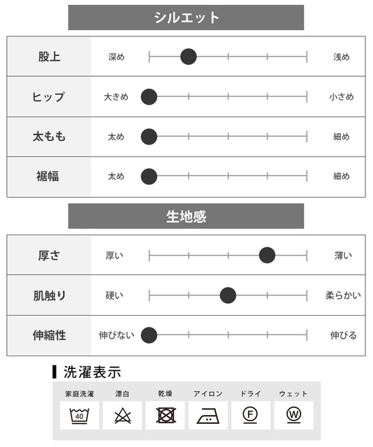 | サイズ | ウエスト | 股上 | 股下 | もも幅 | 裾幅 |