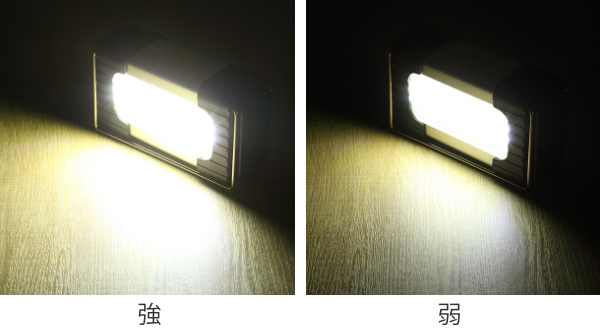 スイッチを押すごとに、ライト(強)→ライト(弱)→フラッシュ→OFFの順に変わります。