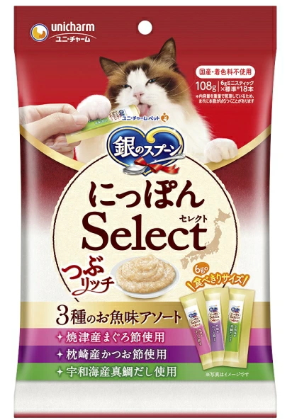 ユニチャーム 銀のスプーン おやつ にっぽんSelect つぶリッチ 3種お魚味アソート まぐろ節&かつお節&真鯛だし使用 108gx20個(ケース販売)