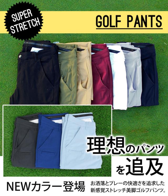 S~3XL 伸びる 伸縮 極上ストレッチ ゴルフウェア nStinger スリット入り スーパーストレッチ ゴルフパンツ おしゃれ 送料無料 春夏 新作 黒 ベージュ グレー カーキ 白 父の日 ゆうパケ