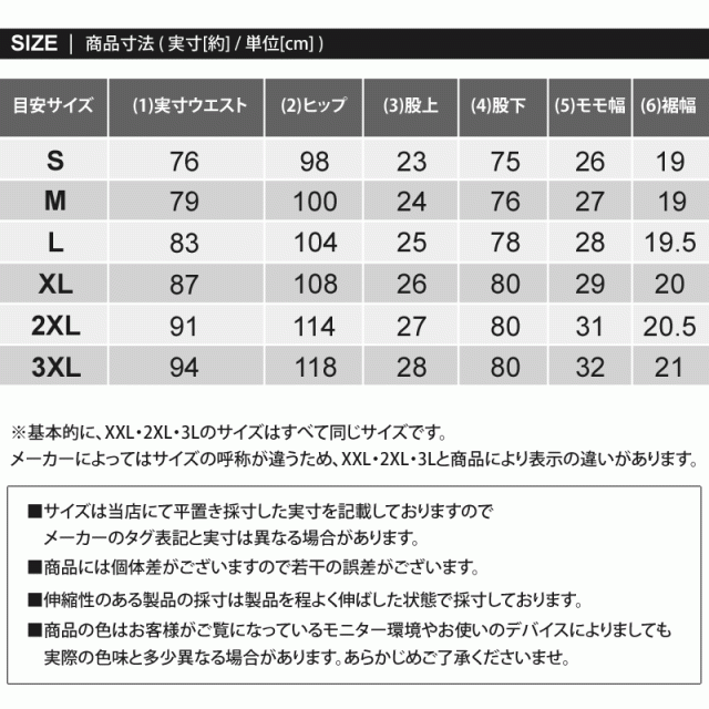 実寸ウエスト/ヒップ/股上/股下/モモ幅/裾幅