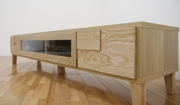 前板に凸凹加工を施したテレビボードです。シンプルモダンなデザインが、どんなお部屋にもマッチします。表面材にはホワイトオーク無垢材を使用しており、天然木ならではの木目の温かみが感じられ、風合いを楽しむことができます。