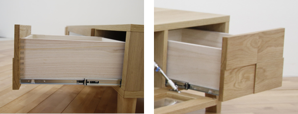 | 材質 | 表面材:天然木無垢(ホワイトオーク) 天板:強化シート 引出し:桐材(ロッキング組) 塗装:オイル仕上げ |