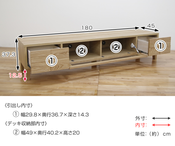 | サイズ | 約 幅180×奥行45×高さ37.3(cm) |