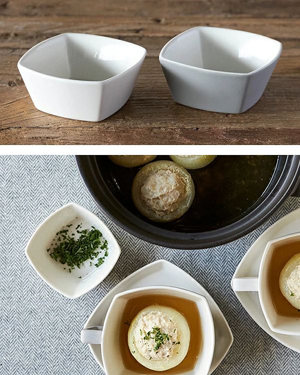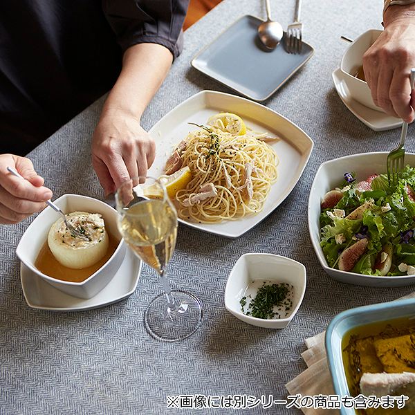 ●スクエア型の食器に変えていつもと違う雰囲気の食卓を楽しめます。