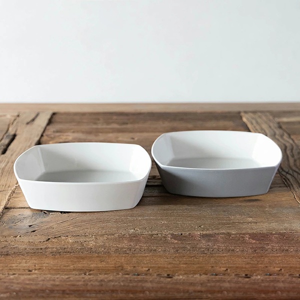 丸みを帯びたスクエア型のフォルムが美しい「KAKU」シリーズ。いつもの食卓と料理でも、スクエアタイプの器をプラスすると雰囲気が少し違ってお洒落感がアップします。サイズ違いで揃えれば、大皿料理から取り皿まで、幅広くお使いいただけます。普段使いはもちろん、おもてなしのテーブルコーディネートにもおすすめです。
