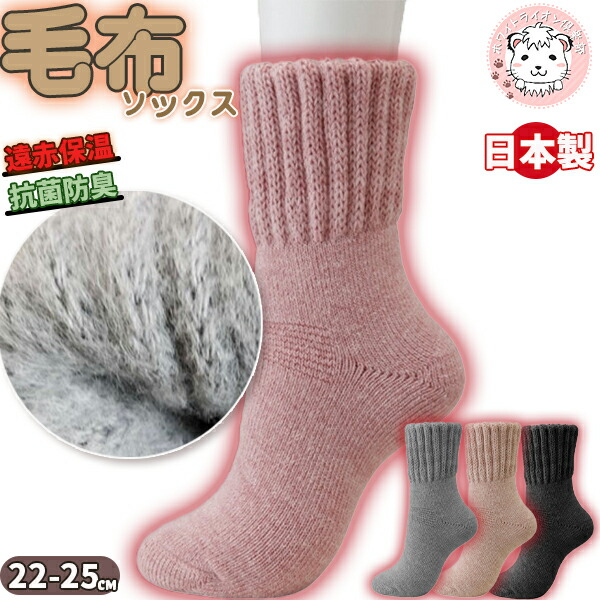 ゆったり ソックス レディース 保温エステ 毛混 毛布 あったか パイルソックス 靴下 日本製 22-25cm ホカホカ クルー丈 遠赤外線 抗菌 防臭 毛布ソックス 裏起毛