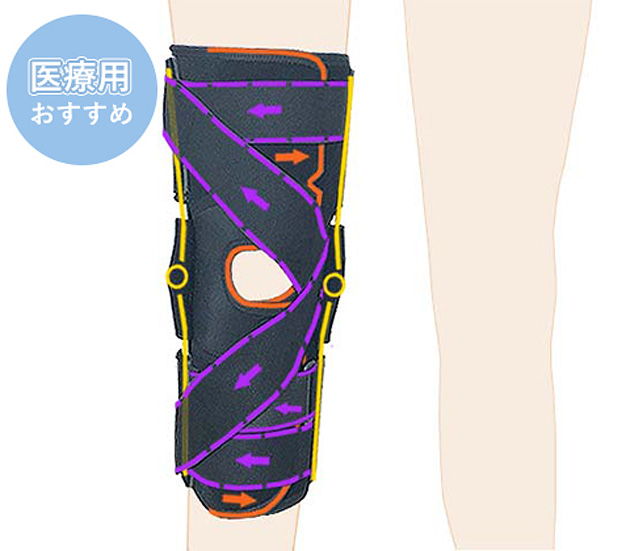 内側側副靭帯損傷、外側側副靭帯損傷に使える専用の膝サポーターです。側方のブレ・ぐらつきをしっかり抑えて痛みを軽減させます。