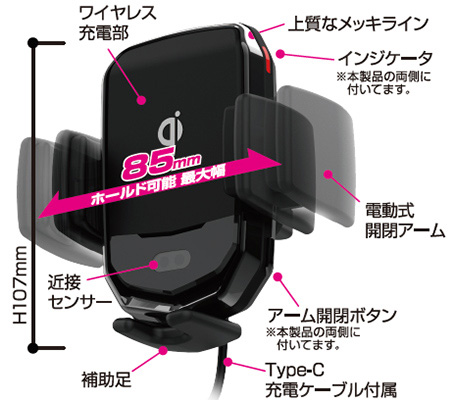 カシムラ ワイヤレス充電器自動開閉ホルダー キャパシタ付 エアコン取付 Qi認証 急速充電 車内 手帳型も対応 KW-17