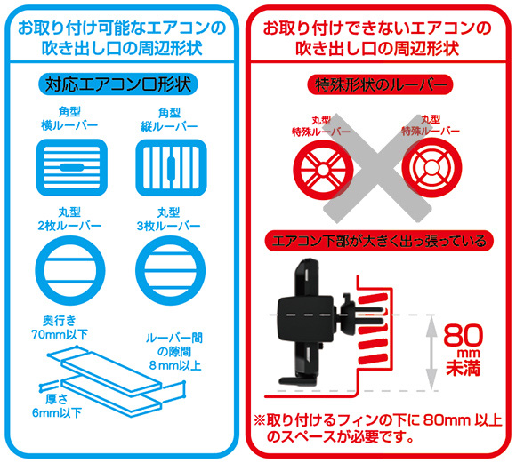 ●クリップをエアコンフィンに挟むだけの簡単取り付け。