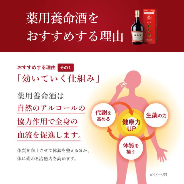 薬用養命酒は14種類の生薬が溶け込む滋養強壮の薬酒です。補う、温める、巡らせるといった生薬の作用で、からだが健康を保つために本来的に