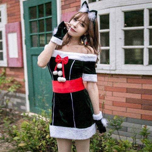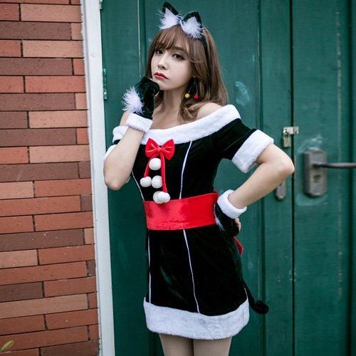 愛らしい猫ちゃんをモチーフにガーリーさを演出しながらもボディに沿ったタイトなラインのサンタガール風コスプレ(COSPLAY)。