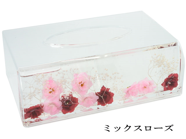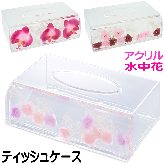 【在庫一掃★残りわずか】 ティッシュBOXケース アクリル 水中花 ラン ミックスローズ スウィートローズ ティッシュケース ティッシュボックスケース