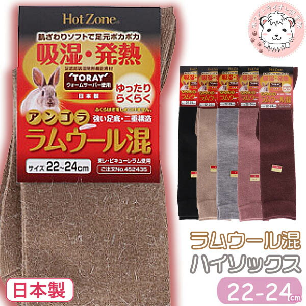ヒートゾーン アンゴラ ラムウール混 ハイソックス 防寒 保温 日本製 22-24cm | ひざ下丈 ゆったり HeatZone 吸湿 発熱 冷え性 レディース 靴下