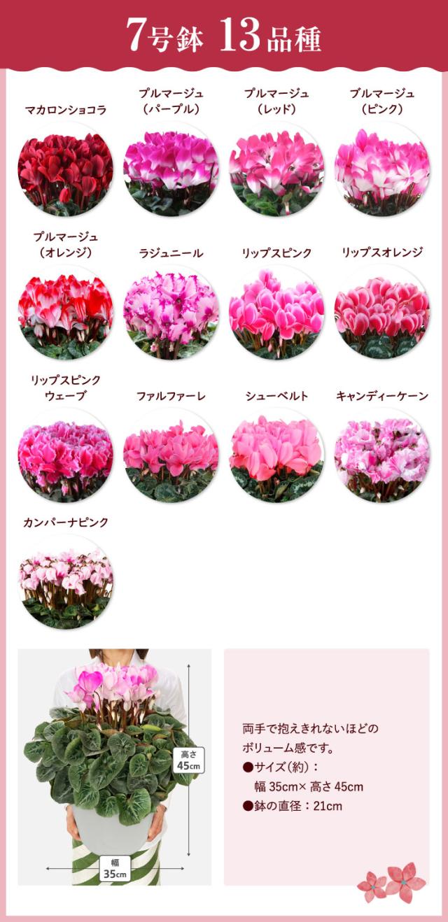 シクラメン 7号鉢 鉢植え 花 ギフト プレゼント お花 鉢花 花鉢 しくらめん 7号 鉢 お歳暮 クリスマス 誕生日 贈り物 フラワーギフト プルマージュ マカロンショコラ レジーナ リップピンク 聖夜のあかり ラダムエレガント ラブキャンドル ラジュニール グランディーナ