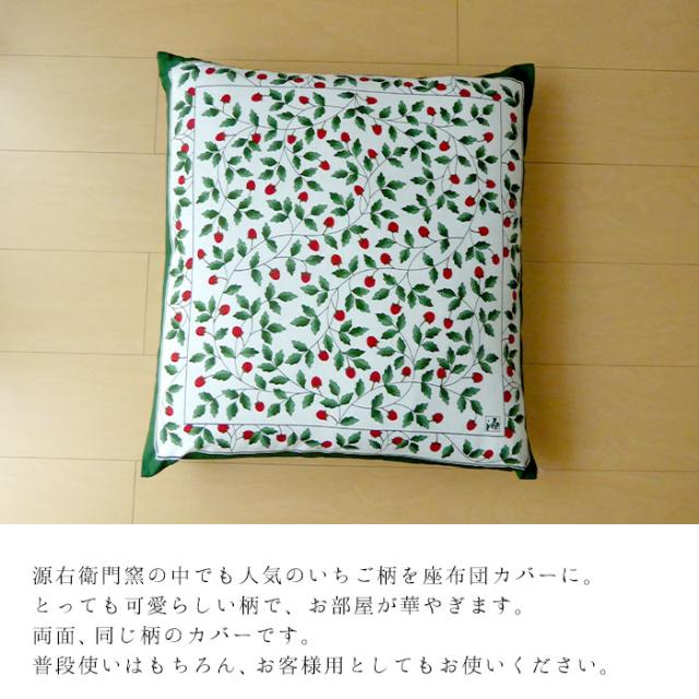 源右衛門窯の中でも人気のいちご柄を座布団カバーに。