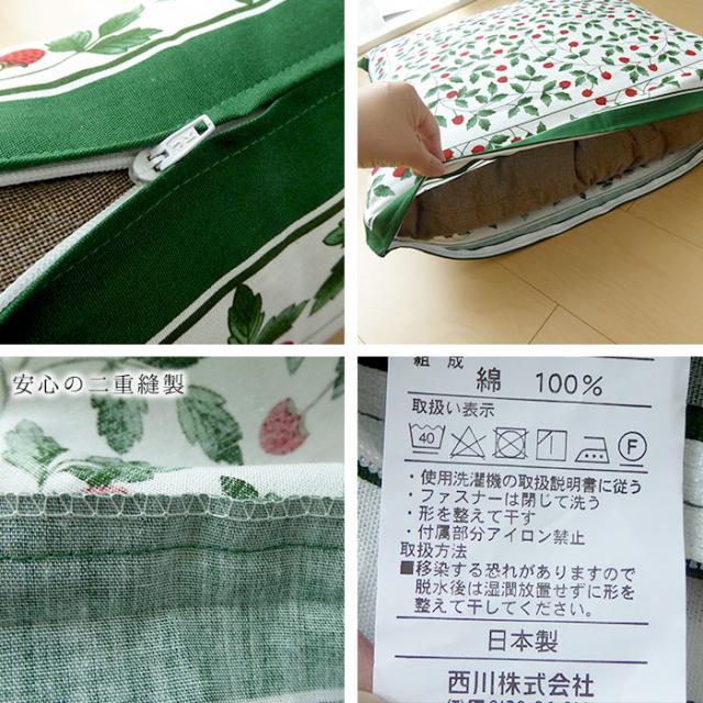 西川 座布団カバー 銘仙判 源コレクション 古伊万里柄 いちご柄 イチゴ柄 和風