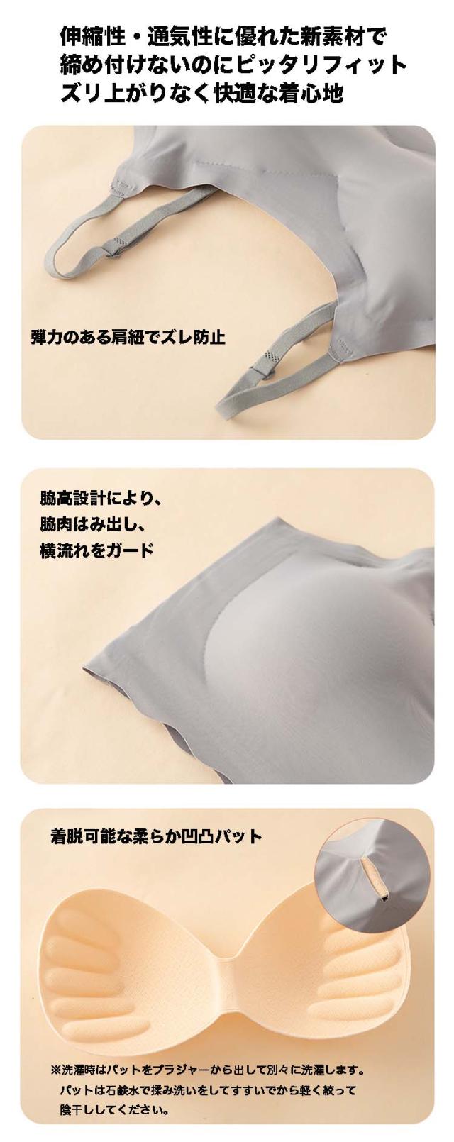 ●3つのストレスフリー:ノンワイヤー、シームレス、アジャスターなし