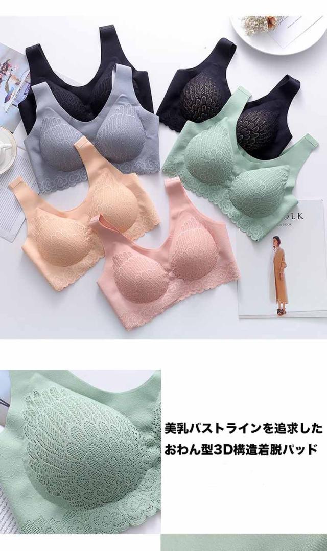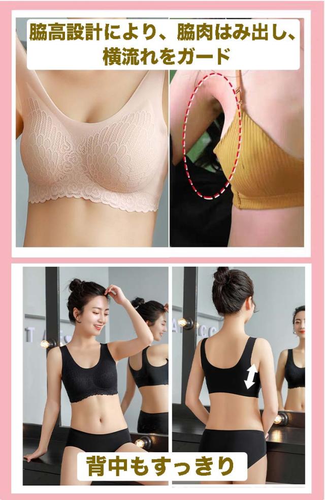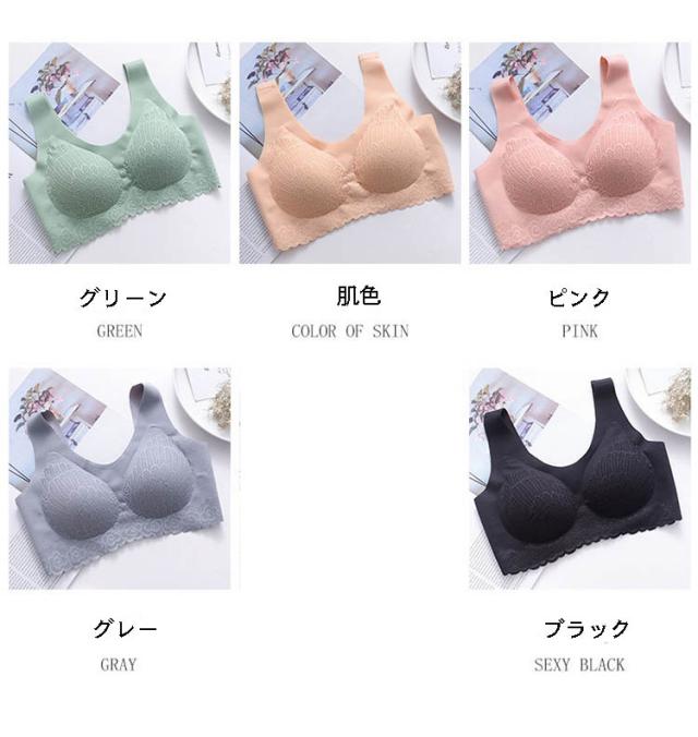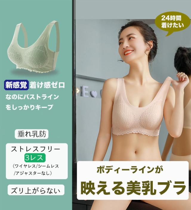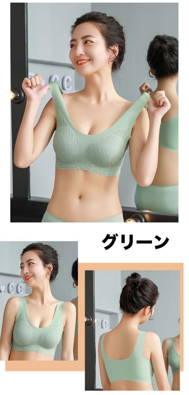 ノンワイヤー 美乳ブラ バストアップ 脇高 ブラジャー レディース ナイトブラ シームレス 快適 インナー 下着 L XL XXL 30代 40代 50代 60代 撮影用 デイリー 普段使い ヨガ スポーツ レース付き フルカップ ブラック ピンク グリーン