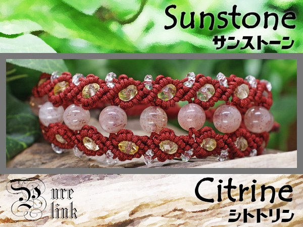 太陽石を表す2つの魔石『サンストーン』『シトリン』マクラメ編ブレスレット