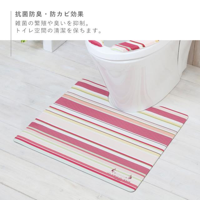 【60cm×55cm】 トイレマット 55cm×60cm おしゃれ 北欧 北欧柄 レトワール 拭ける かわいい トイレ マット シンプル モダン カラフル 高級 消臭 すべり止め 滑り止め 抗菌 ブランド ストライプ ボーダー柄 レッド 青 ブルー ホワイト ピンク パープル グリーン