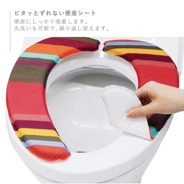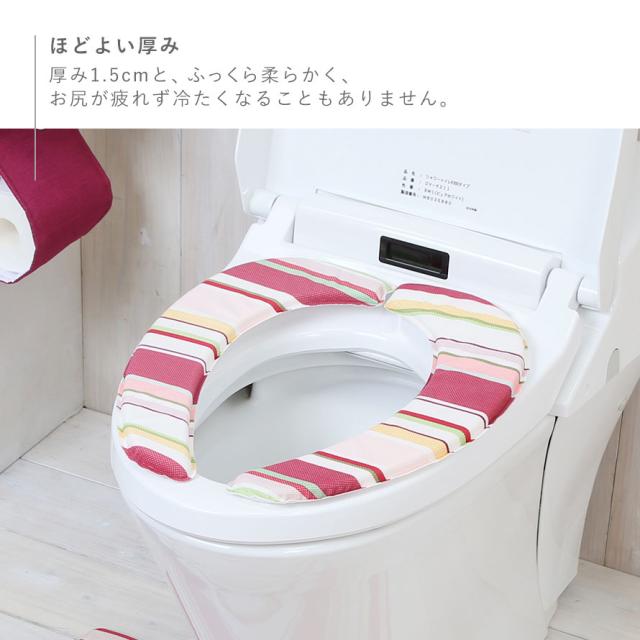 便座シート 貼る 厚手 おしゃれ レトワール 北欧 北欧柄 柄 吸着 洗える 置くだけ ふわふわ 便座カバー 便座クッション トイレカバー 洗浄暖房 o型 u型 水洗い かわいい シンプル 便座 クッション ストライプ ボーダー ボーダー柄 レッド 赤 ブルー 青