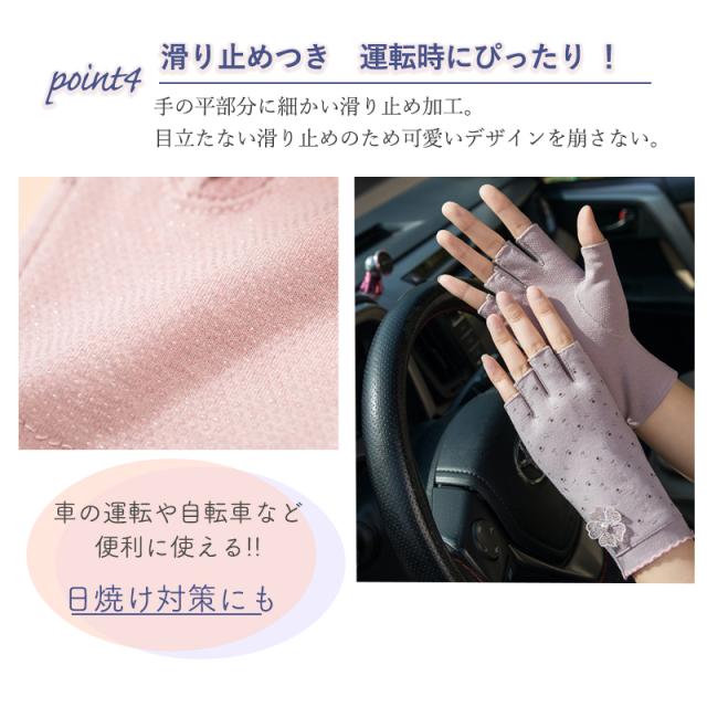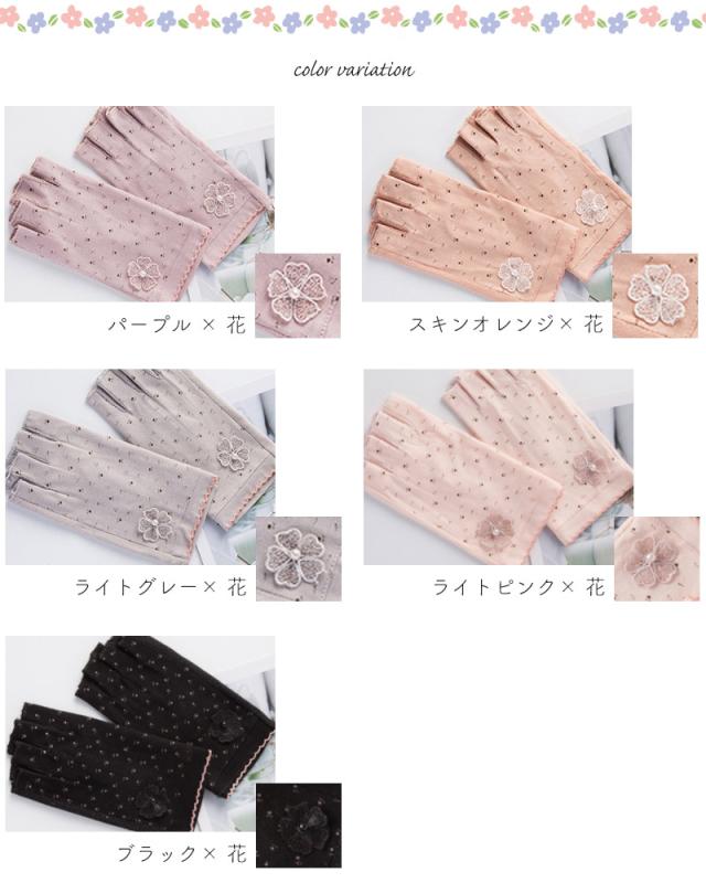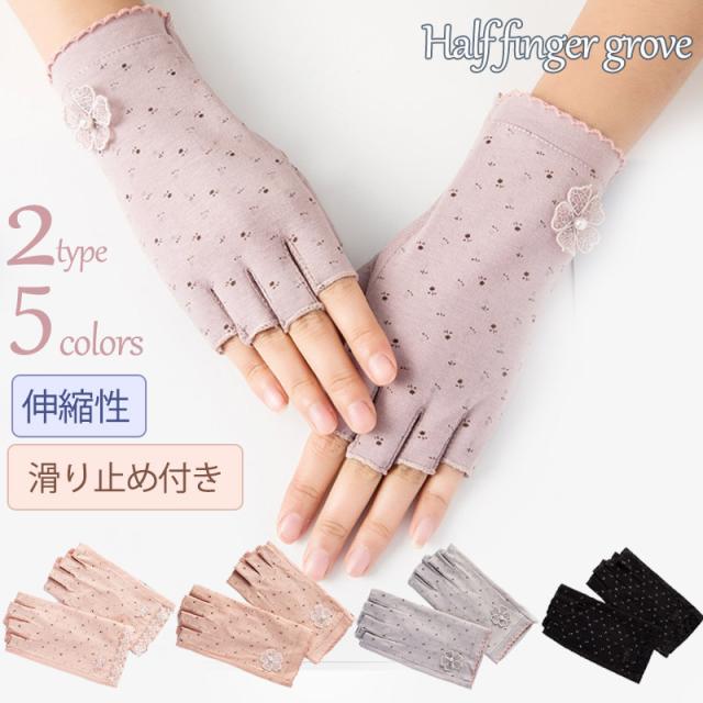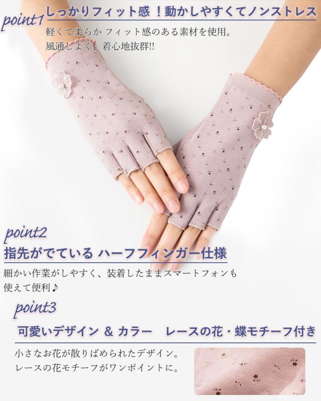 手袋 レディース レース 指先なし 指なし 夏用 春夏 運転 通勤 通学 車 自転車 日焼け スマホ 滑り止め 花柄 かわいい 送料無料