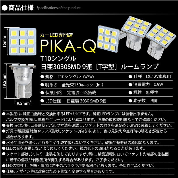 | ピカキュウ,LED専門店,LEDバルブ,LED,SMD,T10,W5W,日亜化学工業,日亜,3030,ルームランプ,カーテシ,爆光,150lm,150ルーメン,ROOM |