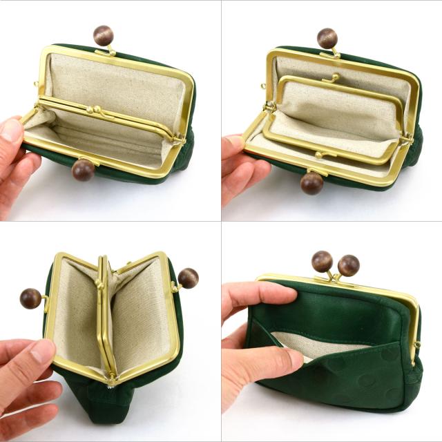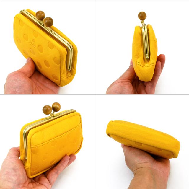 ミニ財布 コンパクトウォレット ウッドボール Folna 2993902 フォルナ がまぐち財布 親子がまぐち 水玉 ドット 型押し 牛革 本革 日本製 メイドインジャパン レディース