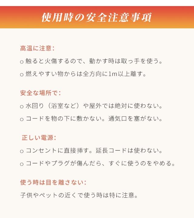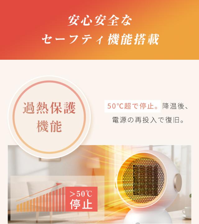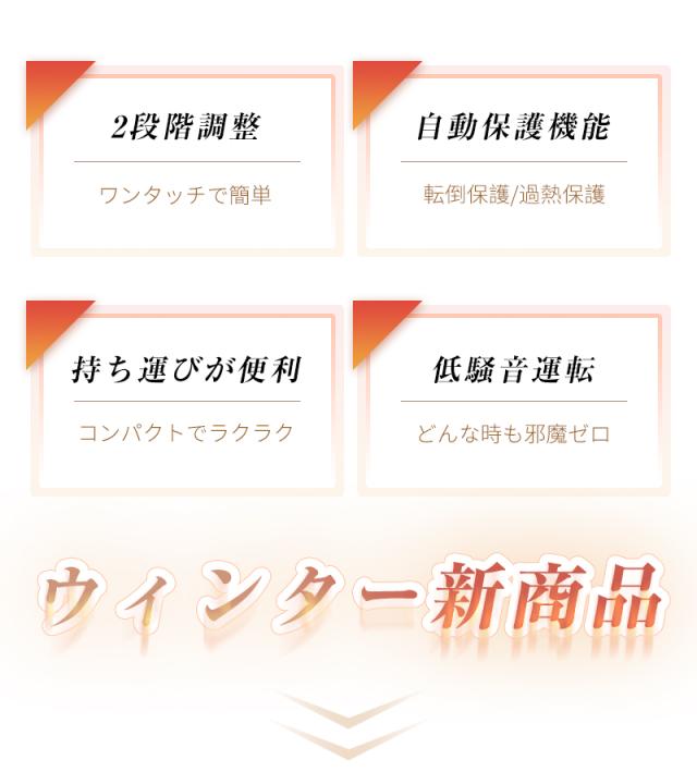 安全機能:転倒時自動電源オフ機能/過熱保護機能/停電保護機能など