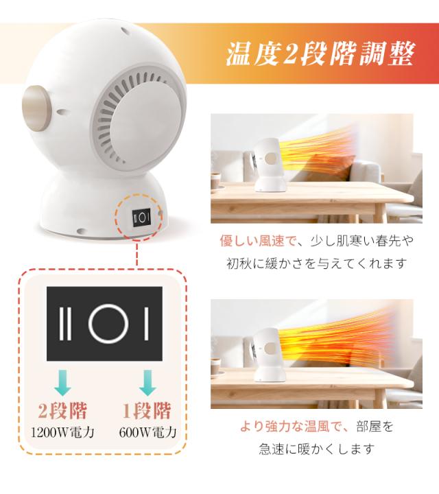 ヒーター 2秒速暖 小型 PTC ファンヒーター セラミック 1200W/600W 2段階切り替え 省エネ 転倒自動オフ 安全 広角送風 温風 足元ヒーター 静音 防寒 冬 移動便利 一人暮らし オフィス ギフト 2025最新モデル 90日あんしん保証付き【PL保険加入済み製品・安心】