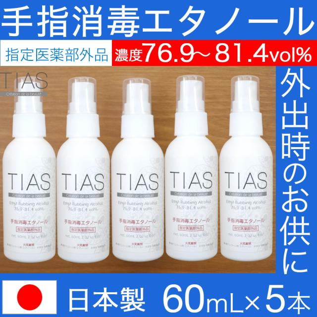 消毒スプレー 携帯用 エタノール 消毒 アルコール 手指消毒 60mL 5本セット TIAS 指定医薬部外品 日本製