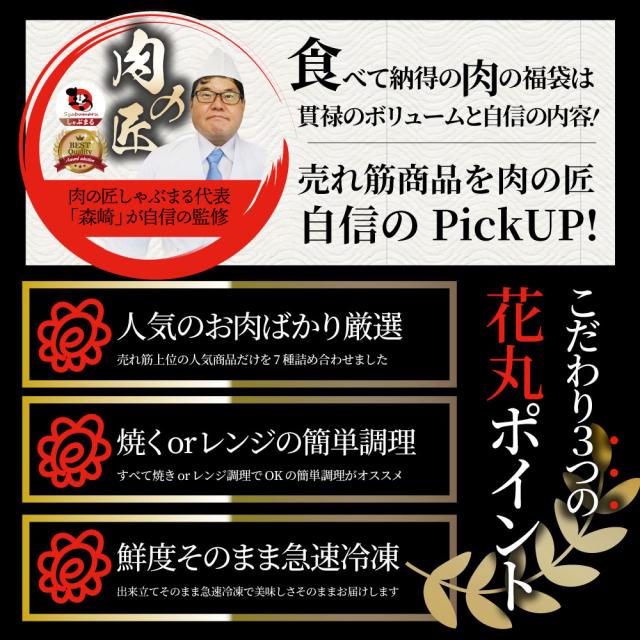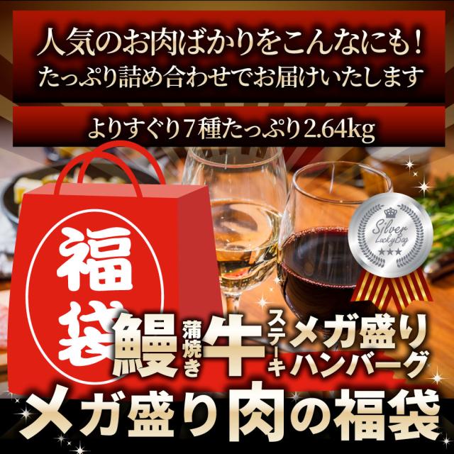 肉の福袋 シルバー メガ盛り 総重量2.64kg( 7種 食べ比べ )完全赤字の肉袋!簡単調理 ランキング1位&人気のお肉ばかりの豪華セット 福袋 牛肉 焼肉セット 焼肉 ハンバーグ 時短 プレゼント 送料無料 *当日発送対象 お肉の しゃぶまる