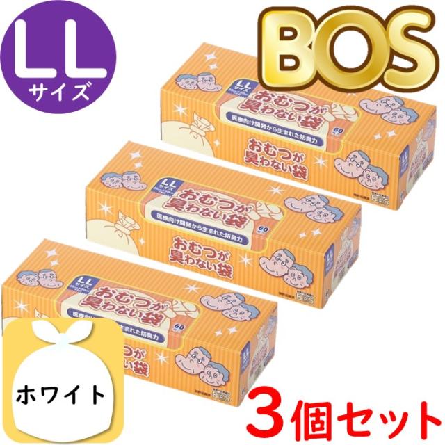 おむつが臭わない袋 BOS ボス 大人用 おむつ LL サイズ 60枚入 3個セット 防臭袋 介護用 紙おむつ 入れ ホワイト 合計180枚