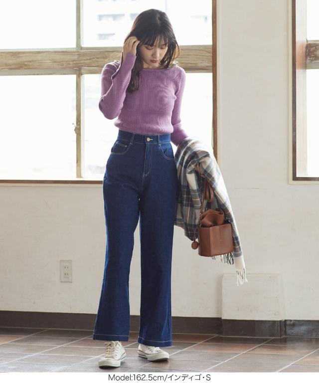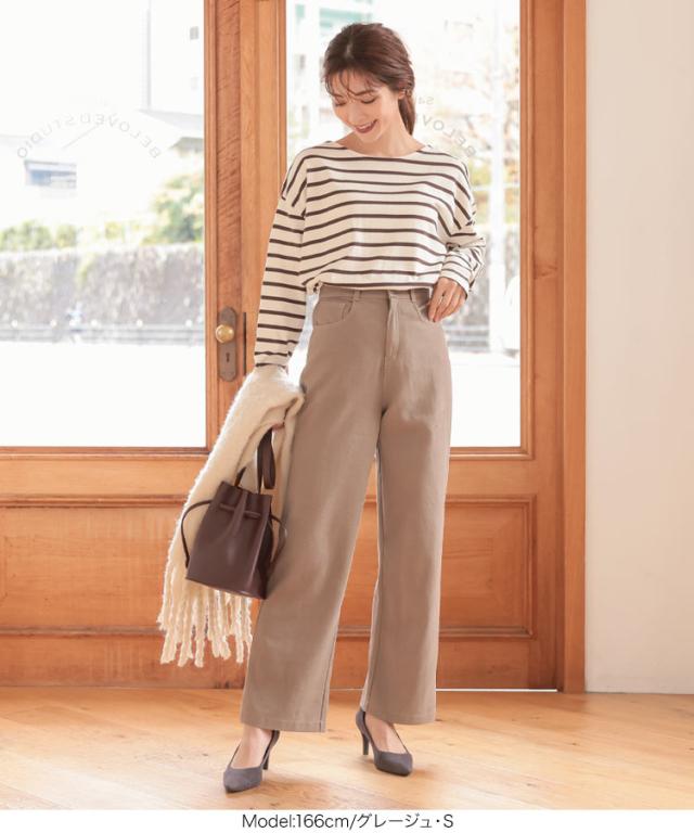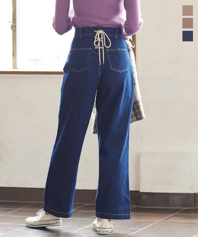 バックレースアップパンツ M3141 入荷済 OR プレゼント レディース 体型カバー ボトムス ロング ツイル デニム ハイウエスト カジュアル 秋