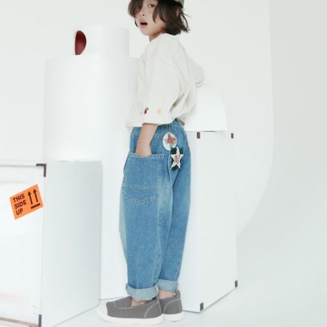 子ども用 デニム ワッペン付きデニム サルエルパンツ テーパードパンツ デニムパンツ ダボパン 韓国子供服 90 100 110 120 130 140 150 女の子 男の子 ベビー お洒落キッズ【メール便送料無料】