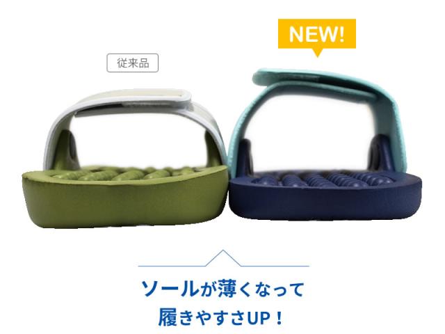 改良点3 ソールの凸凹をなだらかに凹凸がなだらかになり、ツボ押しが苦手な人も履きやすくなっています。
