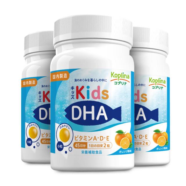 キッズDHA ビタミンA・D・E配合 [ボトルタイプ] 90粒 3個セット135日分【子供DHA/小粒ソフトカプセル/オレンジ風味/子育て応援/DHA&EPA配合/ビタミン/こども/健康/サプリ/サプリメント/栄養補助食品/安心国内製造/コプリナ/送料無料】