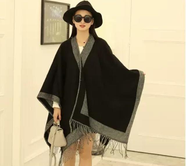 ショールカーディガン ドルマン レディース ニット リバーシブル 厚手 長袖 袖付きストール ボレロ カーディガン ショール ポンチョストール 大判 ドルマンスリーブ 秋冬 ポンチョコート マント アウター 配色 羽織もの おしゃれ プレゼント