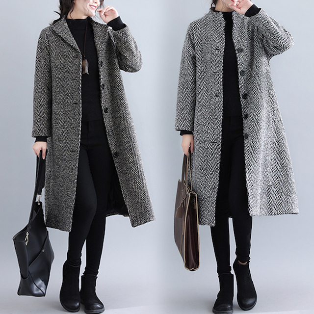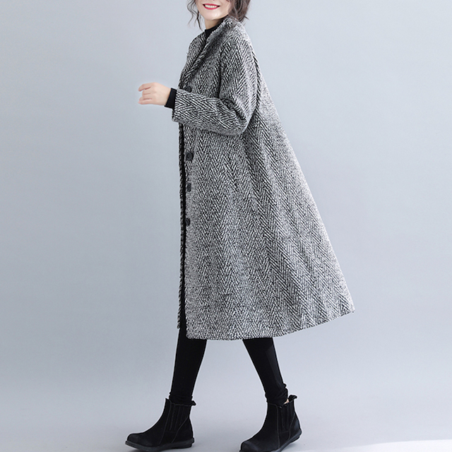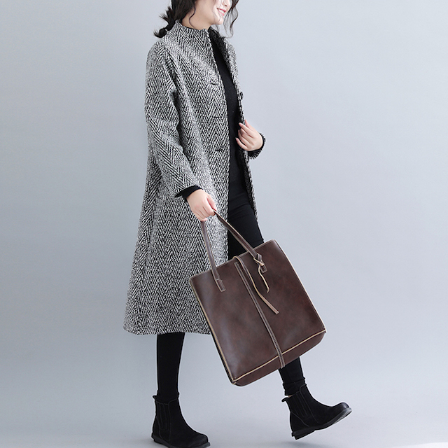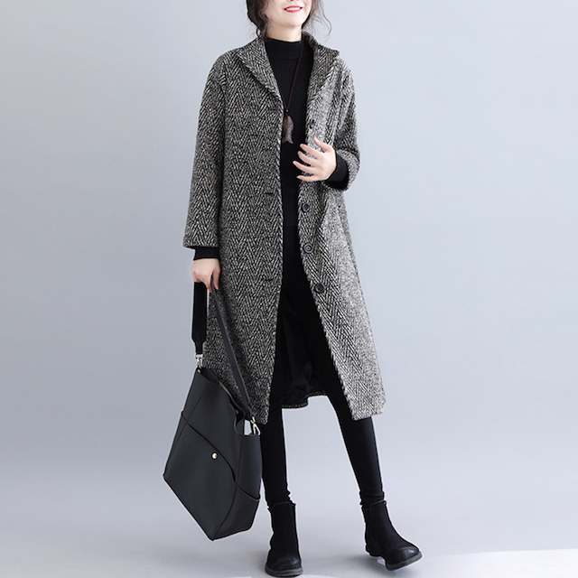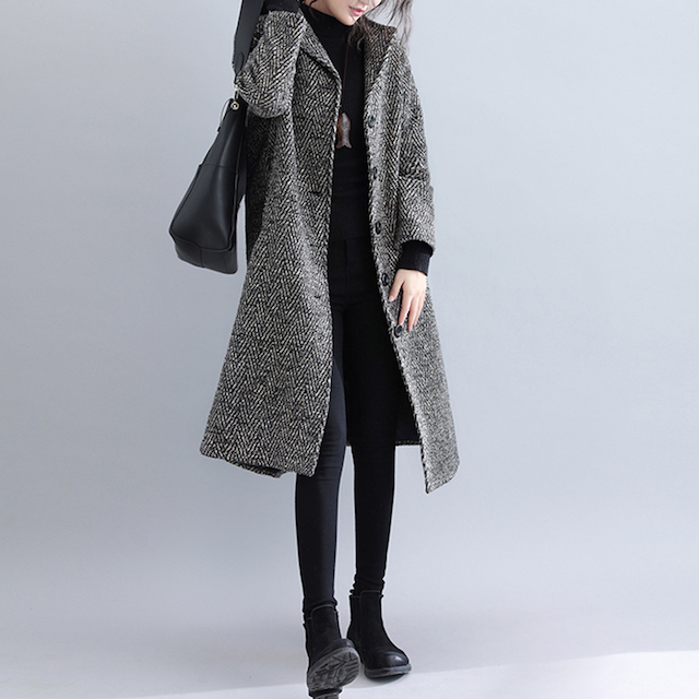 シックで落ち着いた雰囲気のノーカラーコート!