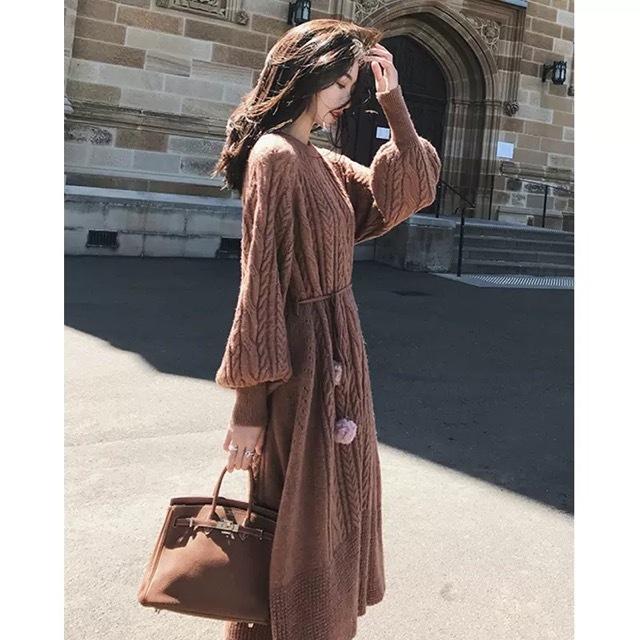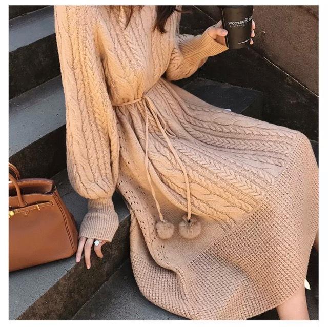 ワンピース 秋冬 長袖 レディース 膝丈 ニット ワンピース ニットワンピース 白 黒 ボタン おしゃれ 大人 トレ定