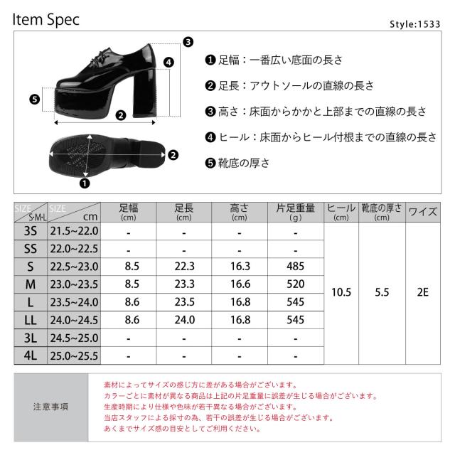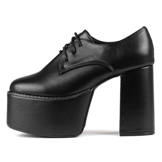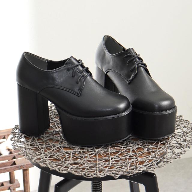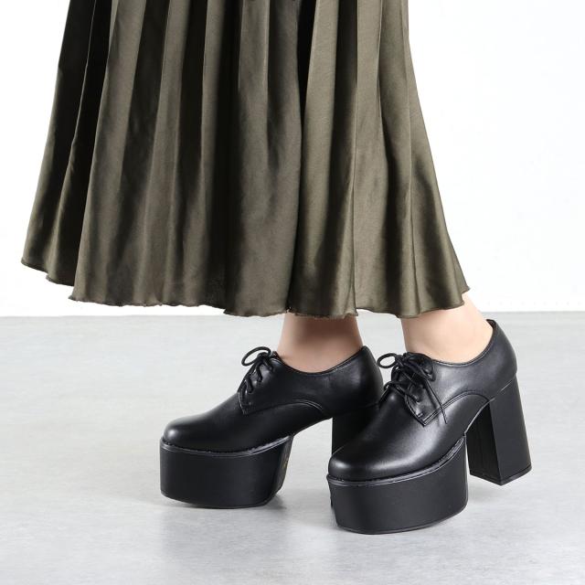 シューズ 厚底 レースアップ レディース No.1533 22.5cm〜24.5cm 黒 ラブハンター