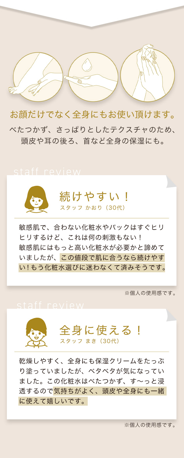 - 私は朝の化粧水にこれを沢山使います。しっとりして大好きです?