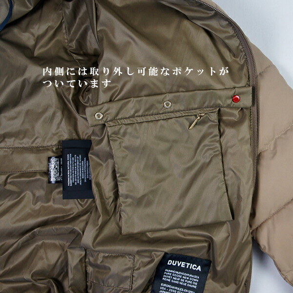 DUVETICAのブランドアイコンでもあるフードトップまで続く