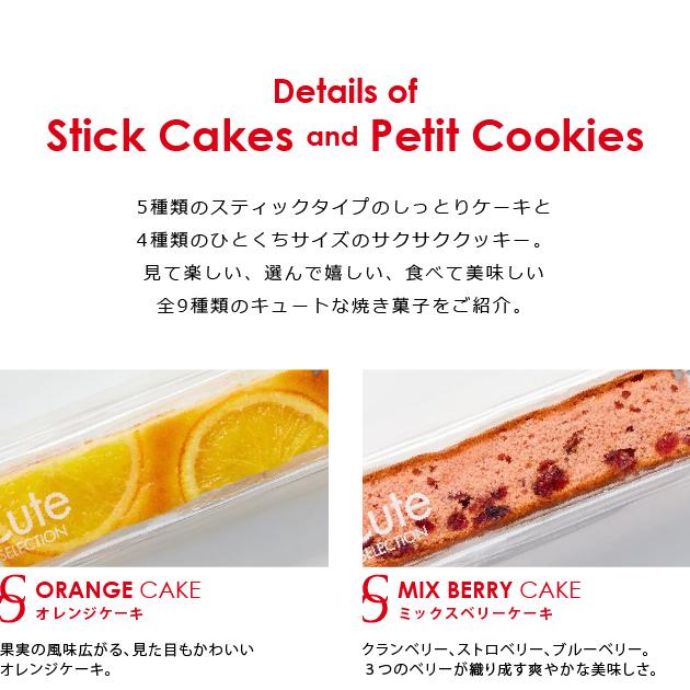 ●オレンジケーキ×2、ミックスベリーケーキ×3、キャラメルアップルケーキ×2、抹茶ショコラケーキ×3、ニューヨークブラウニー×2、ショコラクッキー×3、ストロベリークッキー×4、アールグレイクッキー×3、レモンクッキー×4