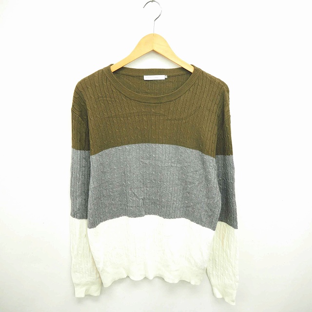 【中古】セブンデイズサンデイ ニット セーター 丸首 ビッグシルエット ケーブル編み 長袖 M 緑 灰 カーキ グレー