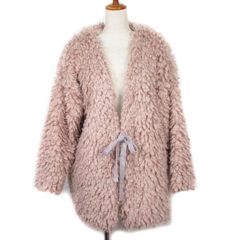 【中古】メリージェニー merry jenny もじゃもじゃリボンコート F ピンク レディース