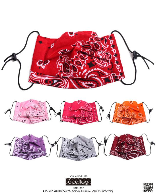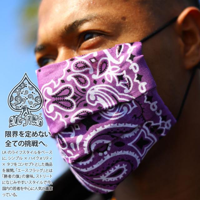 ACEFLAG 洗える マスク 布マスク メンズ レディース 春夏秋冬用 全14色 エースフラッグ プリーツマスク 総柄 派手 ペイズリー柄 バンダナ柄 b系 ヒップホップ ファッション ダンス ストリート系 ブランド AF-MK-CO-014